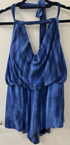 Magicsuit SIZE 12 Flowy One Piece Romper Swimsuit Blue Watercolor Halter Tie