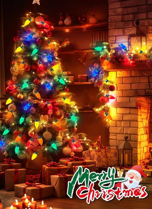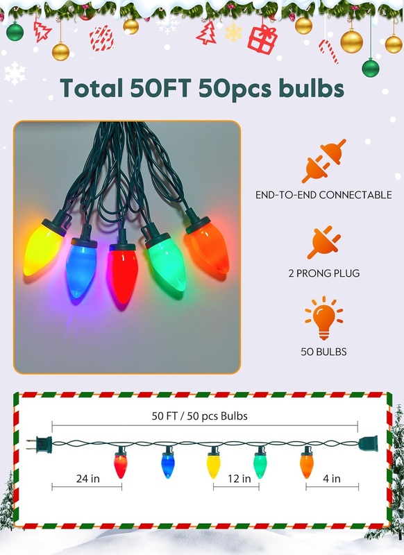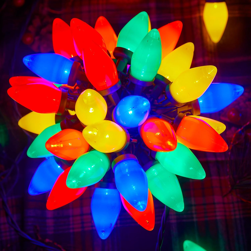 C9 Christmas String Lights Outdoor, 50Feet Vintage Lights 50 Colored Bulbs