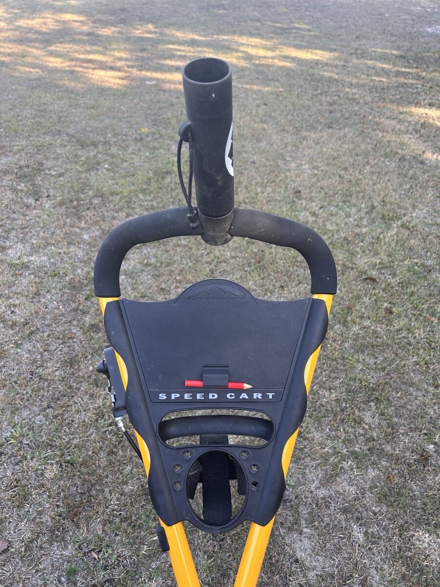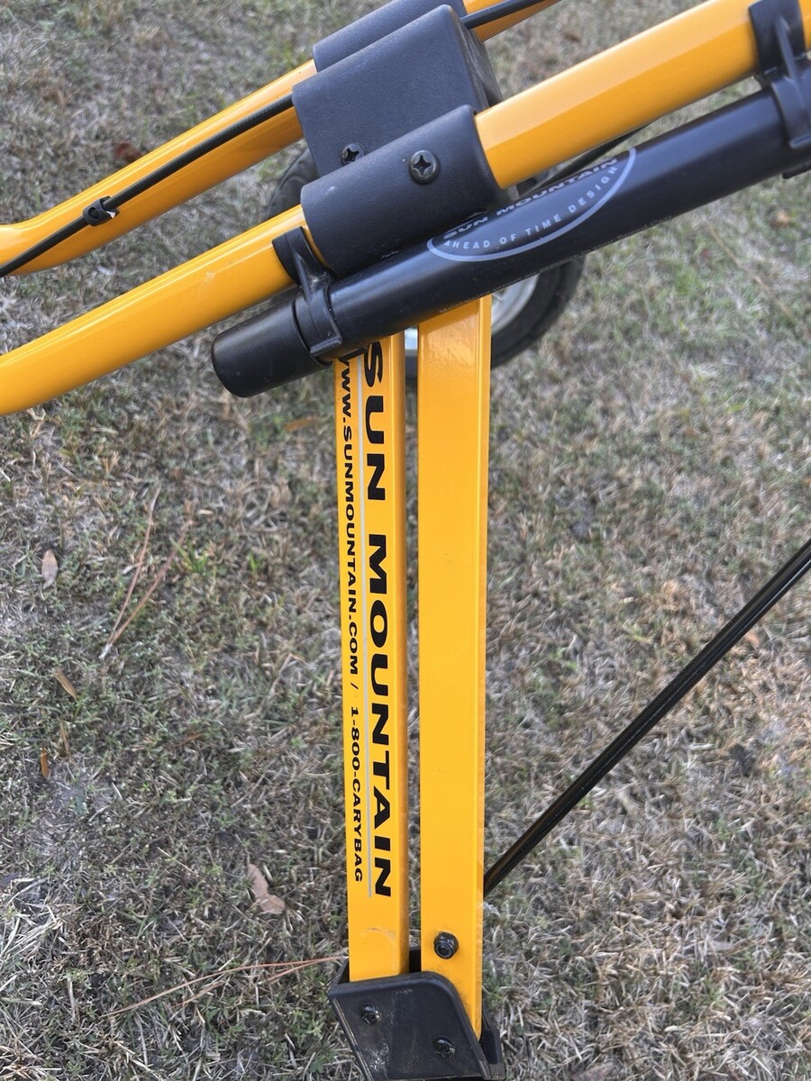 Up for sell is a Sun Mountain Yellow Push Pull Golf Speed Cart