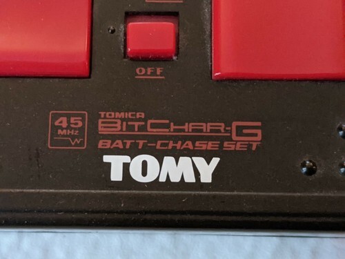A vendre est un Tomy Bit Char-G Chase Set 57 MHz 2001 fonctionnel, telecommande de voiture jouet rouge.