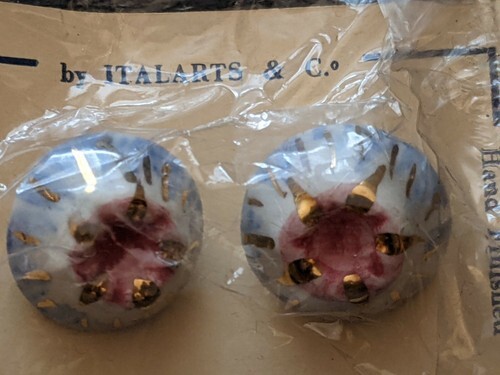 Midcentury Retro Italart Türkis Rosa Keramik Clip-On Runde Ohrringe Italien NEU
