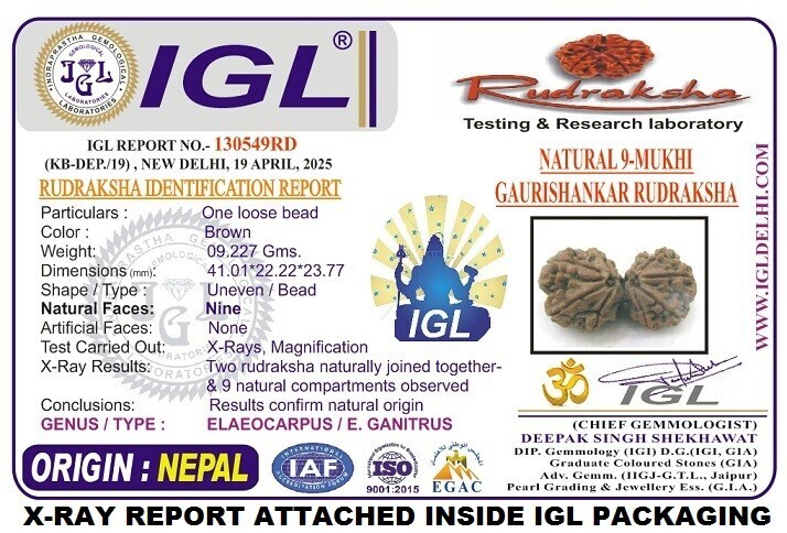 Super Collector Gauri Shankar Rudraksha - 9 mukhi - Nepal - 41mm - IGL Certified
