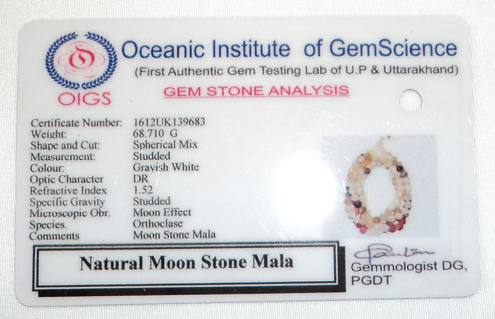 Mala De Piedra Lunar - 8 Mm - 108+1 Cuentas - Certificado De Laboratorio