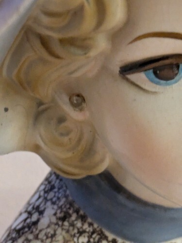 Vintage Nancy Pew 2260 Femme Tête Vase Gris Chapeau Bleu Col Marquée Label 71/8