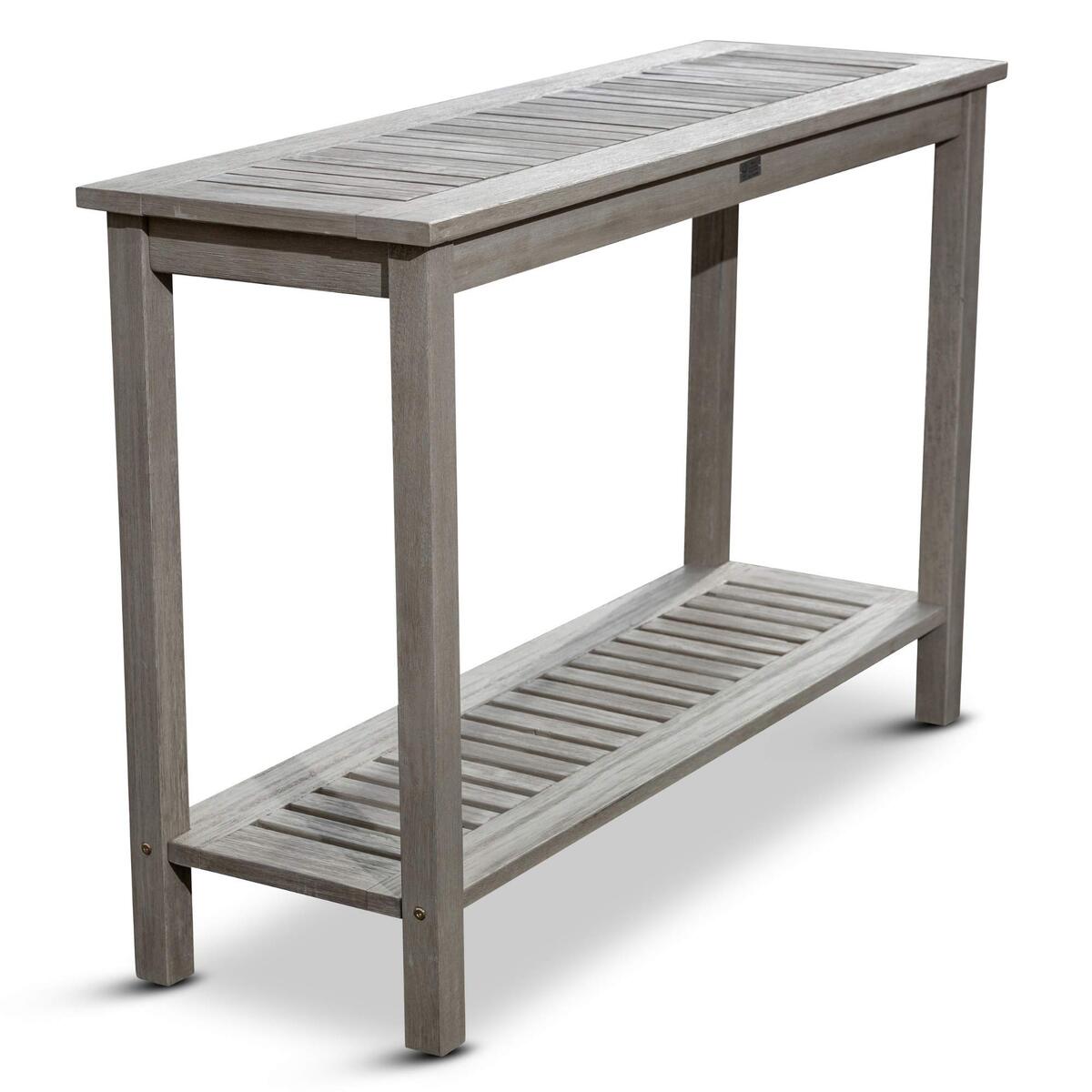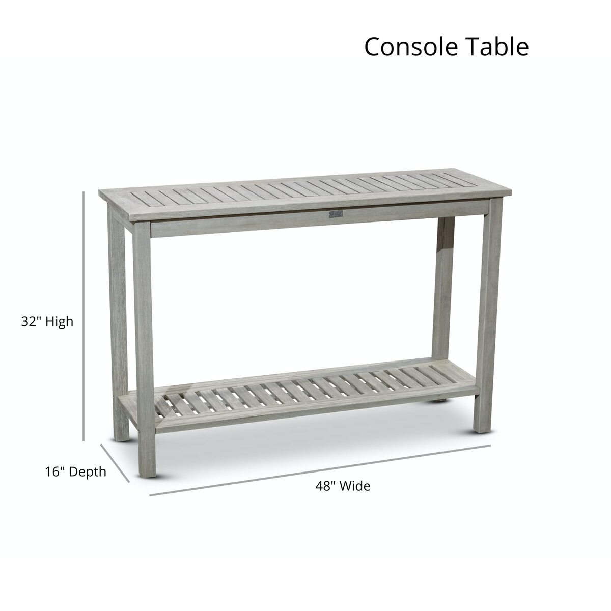 Entertain in style with our classic console table. Our versatile eucalyptus console table is a wonderful addition to your outdoor furniture collection. Crafted from premium eucalyptus this table features 2 shelves and a slatted design. This beautiful table has plenty of space to set up a buffet for your summer party or as display for your plants or other decor.