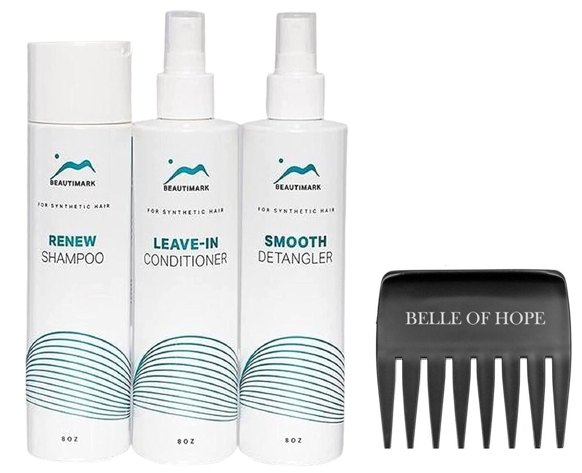 4PC Synthetic Hair Care Must Haves Kit , 8floz each, Wig Brush, and 19 Page How