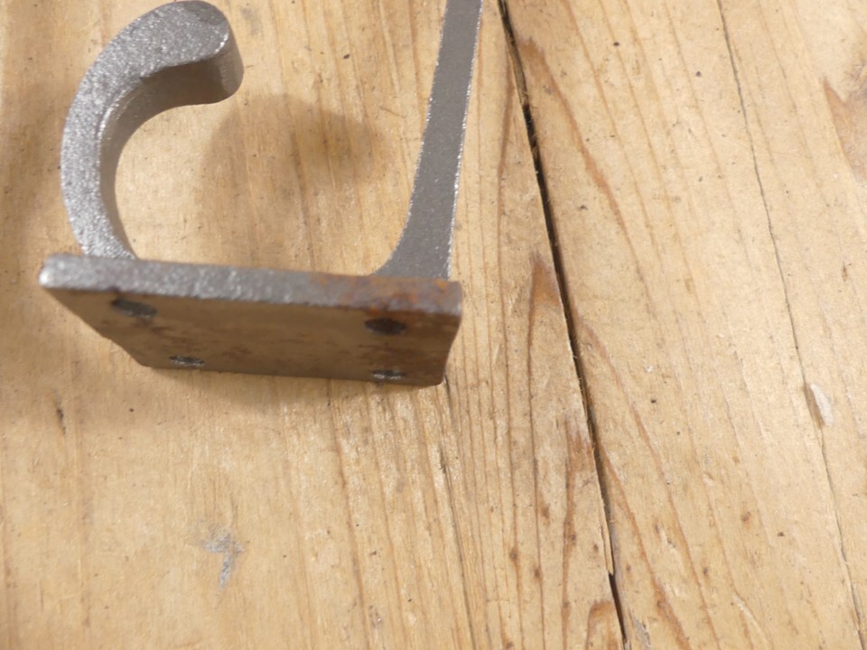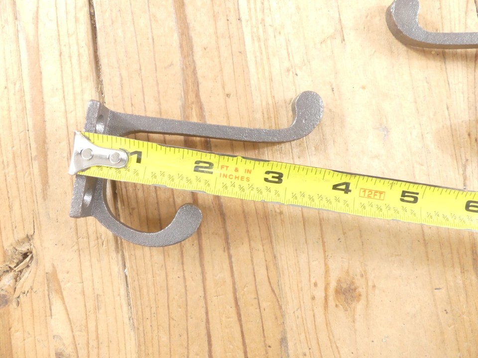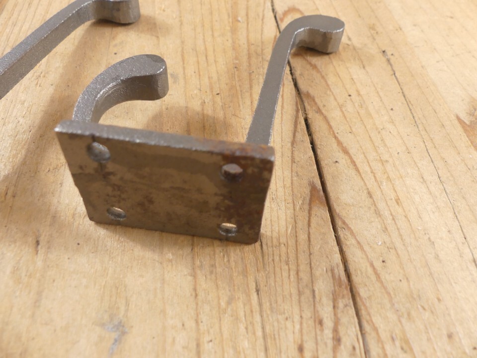 2 METAL HOOKS COAT HAT RACK HEAVY DUTY 3 1/2" IRON STORAGE **SOME RUST**