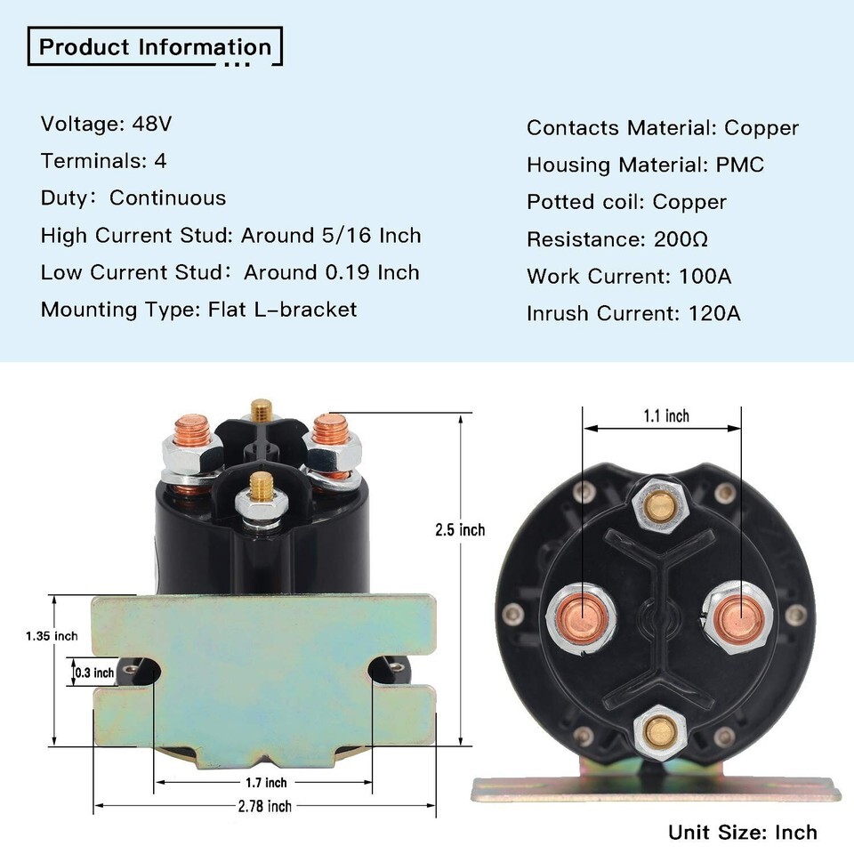 EZgo TXT Golf Cart Part 4 Terminal Solenoid Electric 48 Volt 2010up TXT 612711