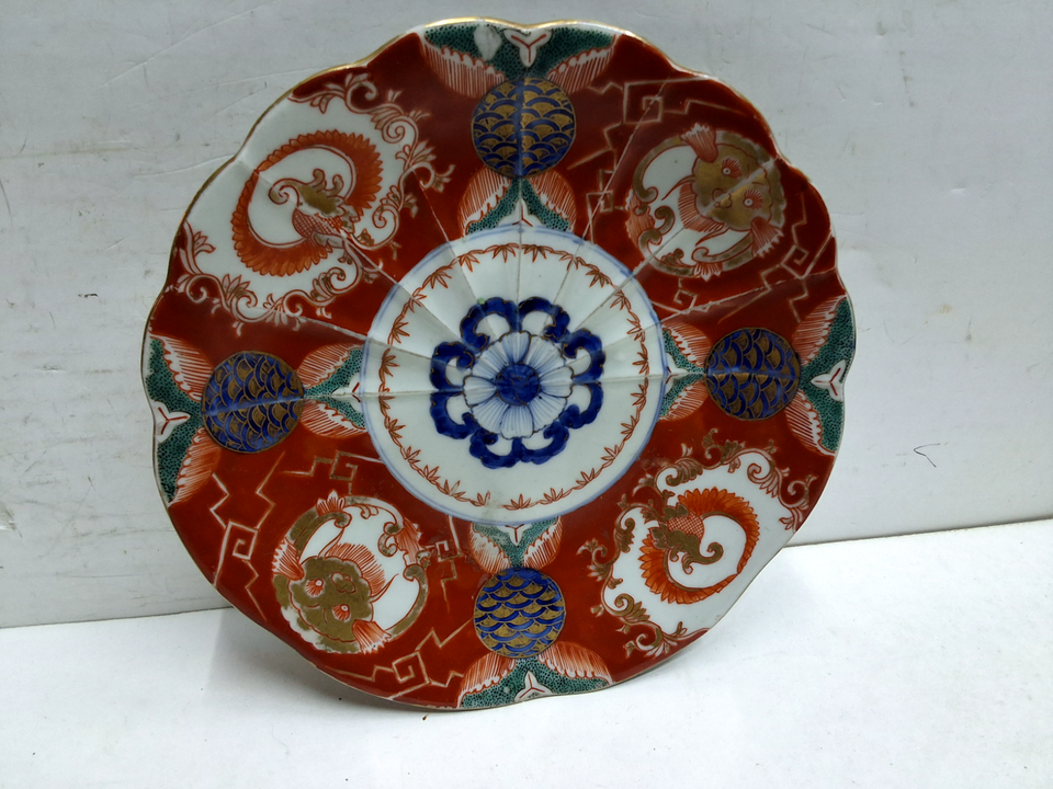 Vintage Japanese amari style 9 in plate. Small chip along the edge see photos to be sure you can use it.