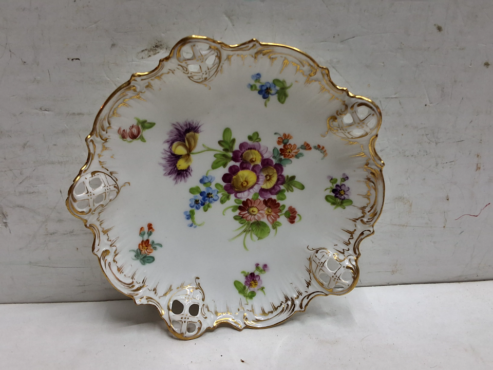 Vintage Dresden 6-in dish. Small chip on the back see photos to be sure you can use it.