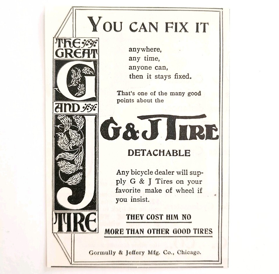 G & J Tire Bicycle Parts 1899 Advertisement and similar items