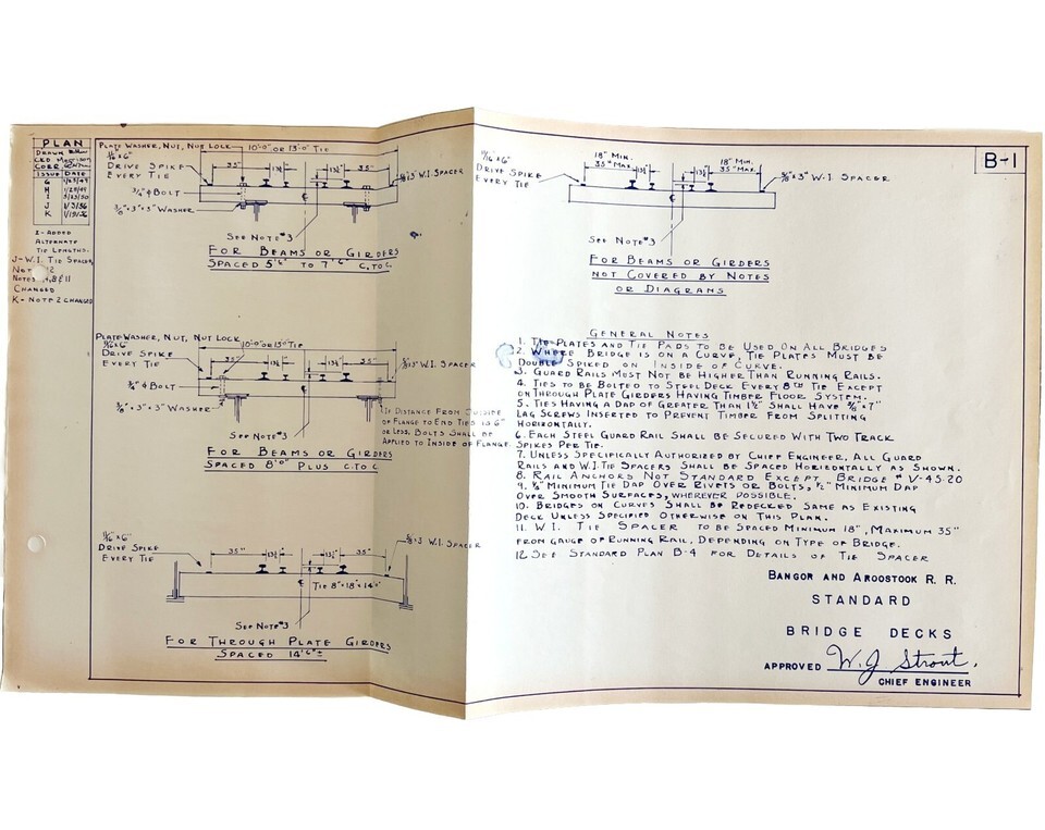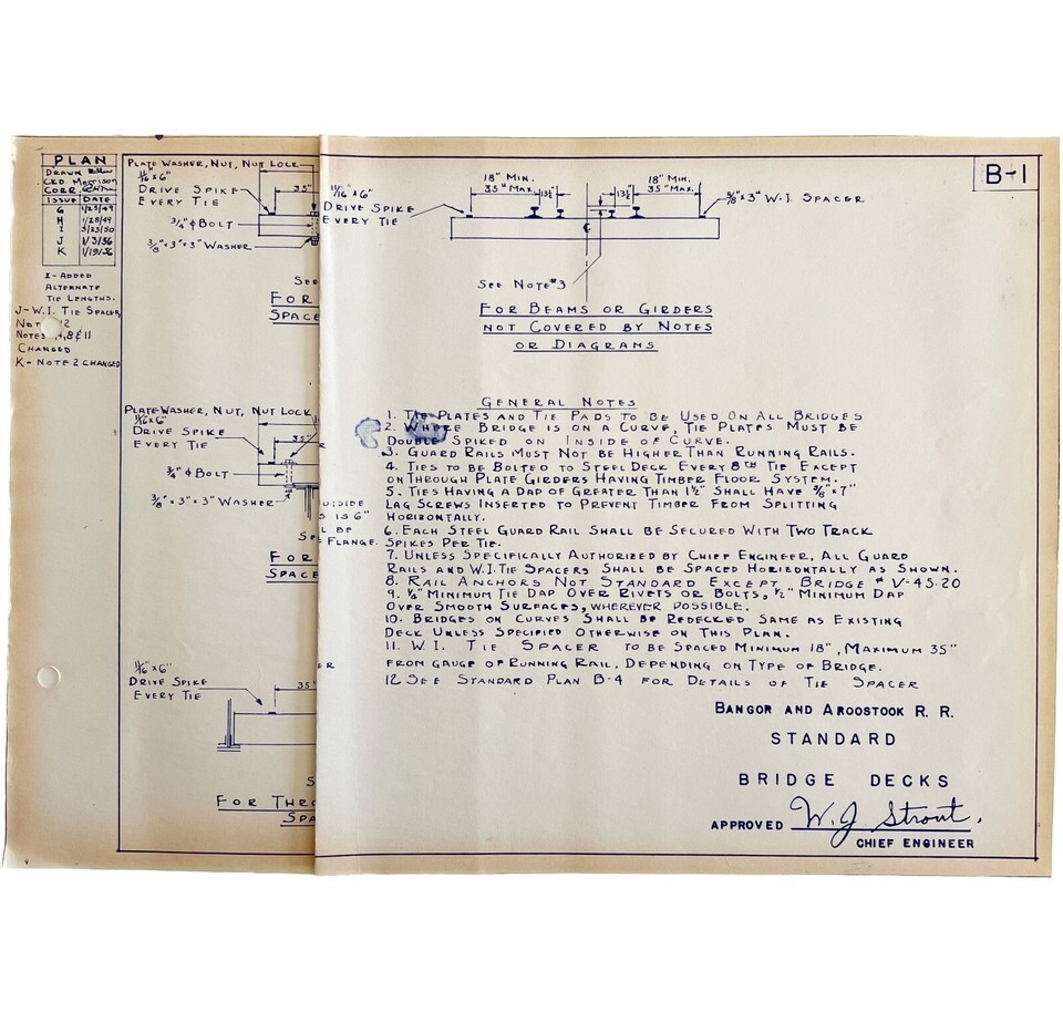 1956 Railroad Bangor Aroostook Original Blueprint Bridge Decks Girders B1 DWDD11
