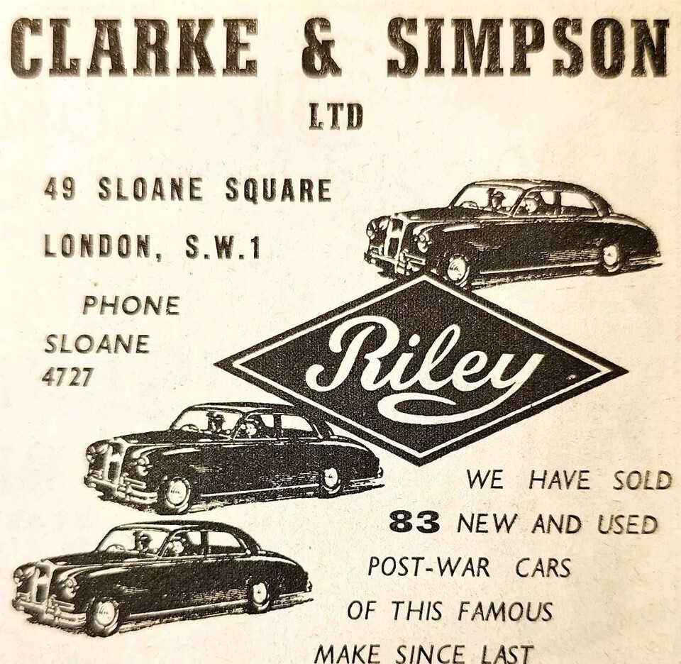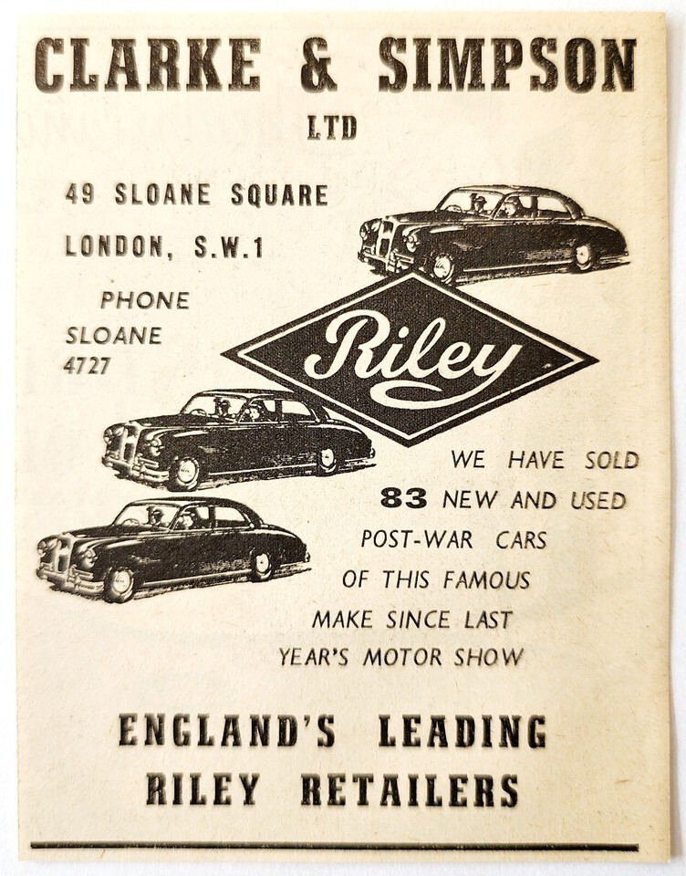 1954 Clarke & Simpson Riley Car Dealership Advertisement Automobilia E89G2