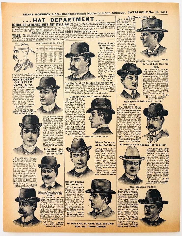 1969 Men's Bowler Hats Reproduction Advertisement Sears Fashion Clothing DWU17E
