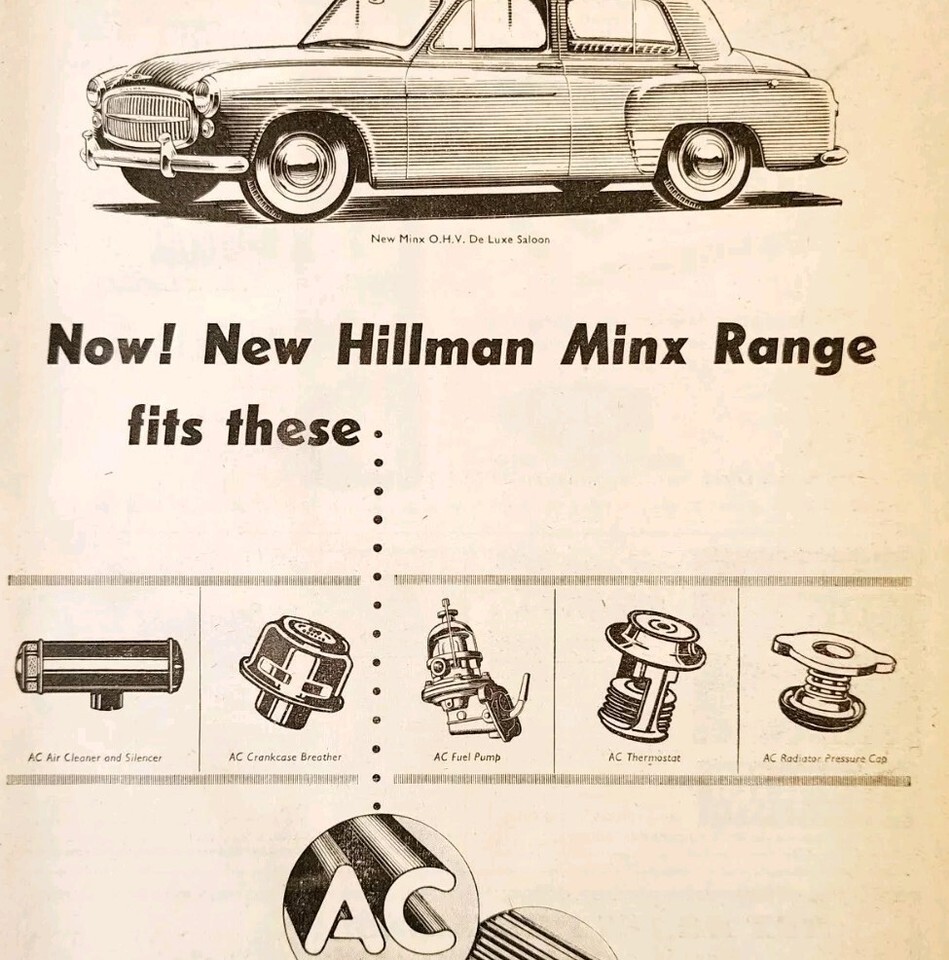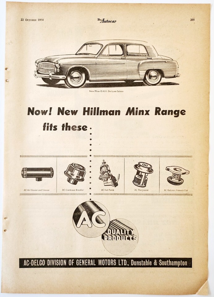 1954 Hillman Minx AC Delco Import Advertisement Autocar Automobilia DWPP12B