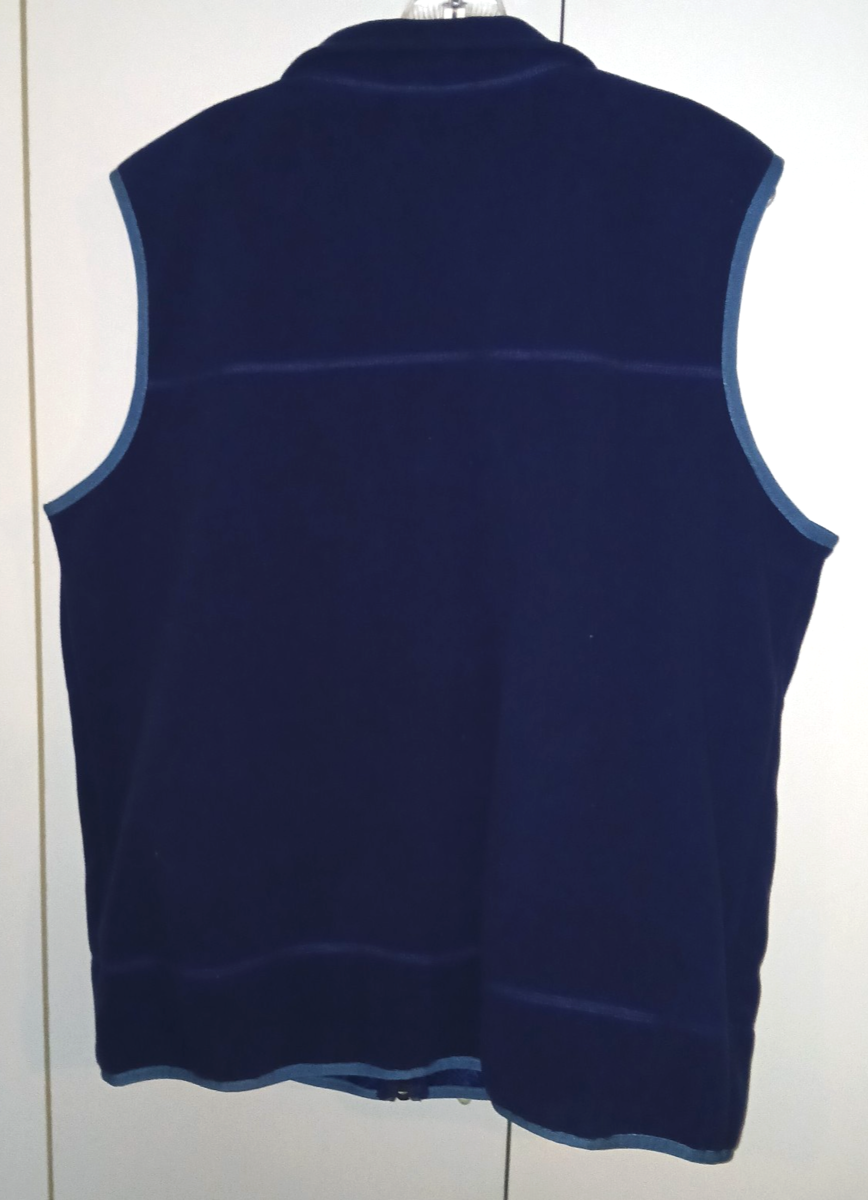 THIS IS A GREAT MEN'S L. L. BEAN 100% POLYESTER BLUE ZIP POLARTECH VEST IN A SIZE LARGE REGULAR. IT IS IN EXCELLENT, LIKE-NEW, CONDITION--WORN ONCE FOR A VERY SHORT TIME--VERY CLEAN--NO SIGN OF WEAR. STICKER STILL ON IN BACK NEAR TAG.