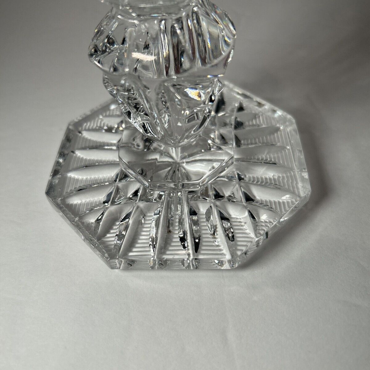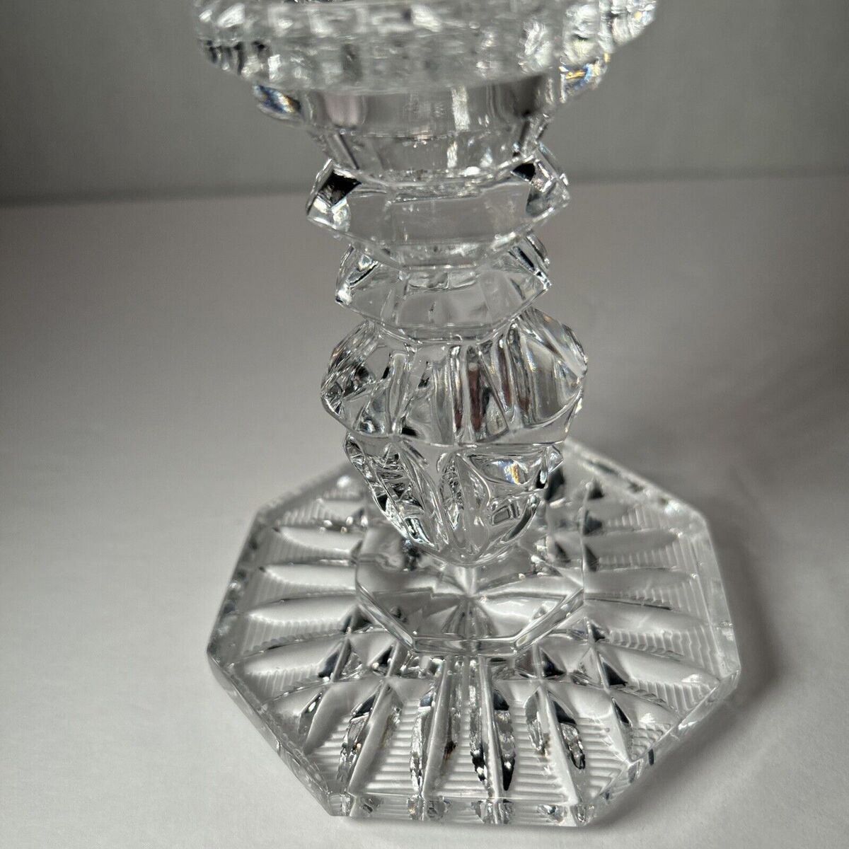 Vintage Cut Crystal Candle Holder 4.5" Starburst Design Octagon Base