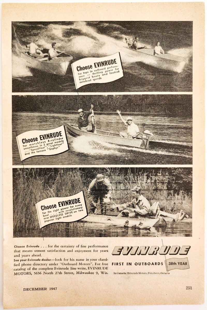 1947 Evinrude Outboard Boat Motors Advertisement Vintage Fishing Boating E8E