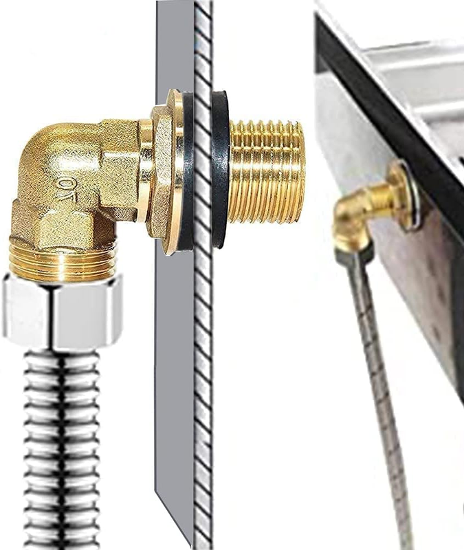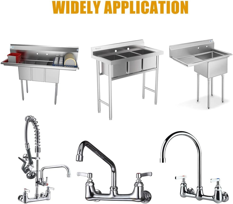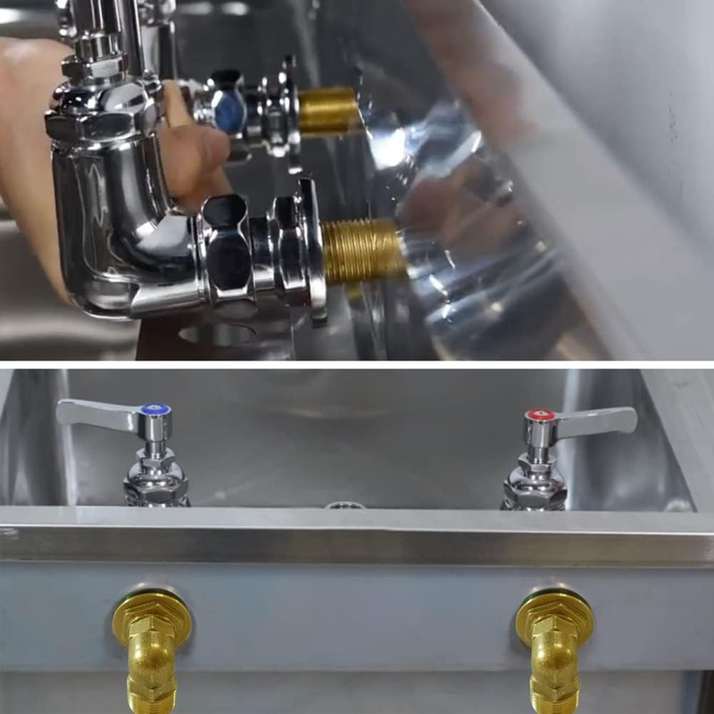 ?Design?This 90 degree elbow adapter is designed for wall mount commercial sink faucet backsplash mount on stainless steel prep utility sinks. Its one-piece construction prevents it from leaking. Two rubber washers provide double protection against leakage.
