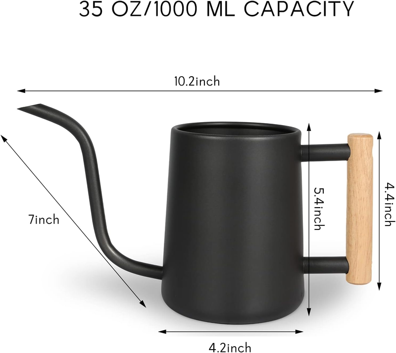Watering Can for Indoor Plants, 35 Oz/1000 Ml Metal Stainless Steel Pot with Long Spout for House Plants Bonsai Outdoor Garden Flower Decorative (Black)