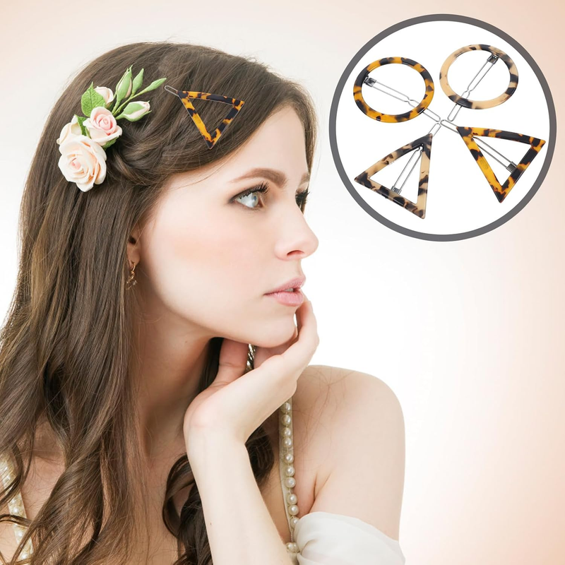 4 Pieces Tortoise Hair Clips Celluloid French Design Barrettes Acrylic Resin Hair Clips Geometric Hair Pins Triangular Circle Leopard Print Barrettes for Women Girls