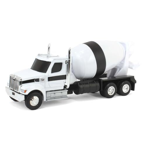 Product description: Made by ERTL, the leading in farm toys for over 60 years. This 1/64 scale model of a Western Star Cement Mixer is die-cast with some plastic parts. The truck and mixer are white with black stripe through them. The truck measures approximately 5.75"L x 1.75"W x 2.25"H and is recommended for ages 3+. *NOTE: Item is sold "loose" - it does not come with any original packaging or blister pack.