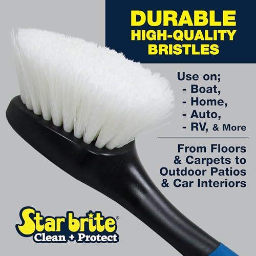 STAR BRITE Stiff Deck Brush with Long Handle - Heavy-Duty Marine-Grade Scrubber