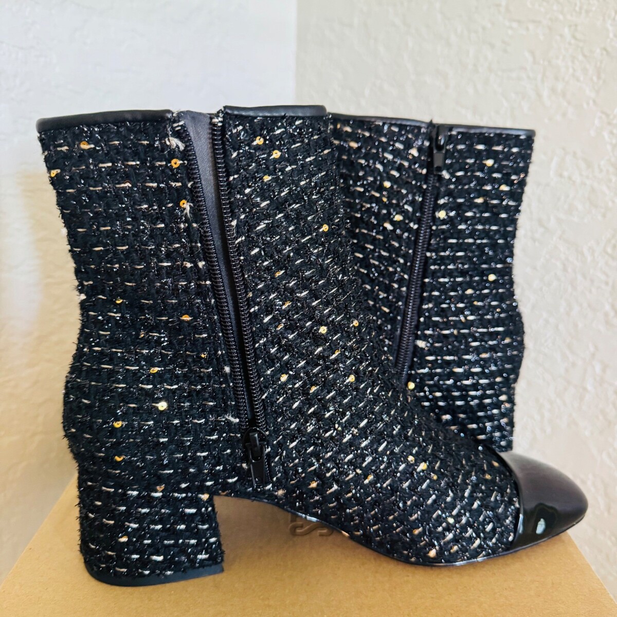 Steve Madden Eiffel Bootie, Tweed Black Sparkle, Low Block Heel, Size 8.5, NWT