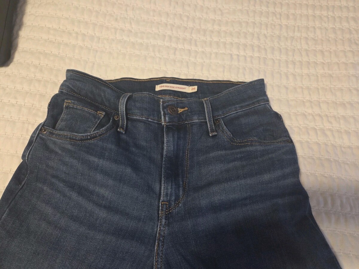 Levis Womens 724 High Rise Straight Jeans W26 L32 Blue Denim