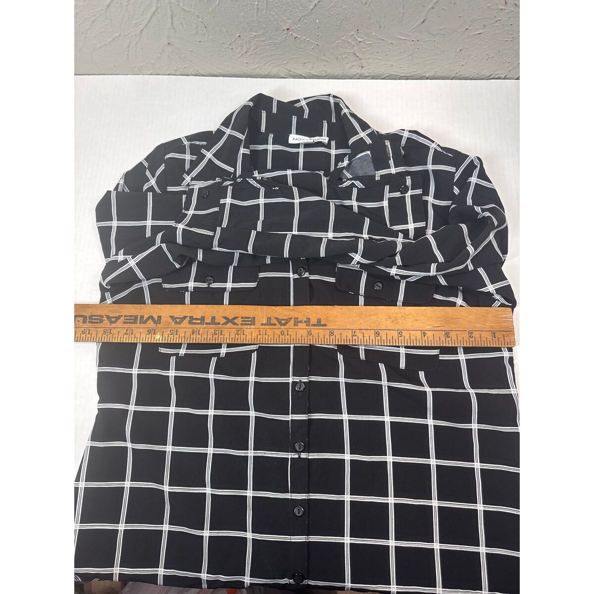 Notations Womens Black White Checkered Blouse 3/4 Tab Sleeves Shirt Size Small
