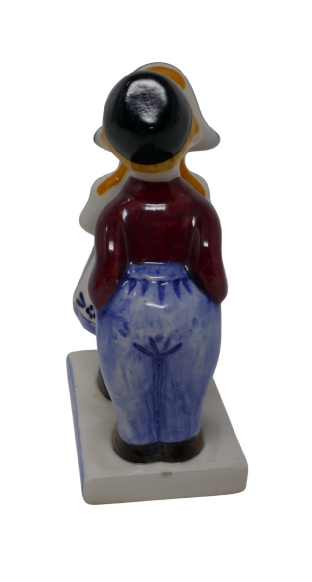 The Elesva Hand Painted Vintage Holland Delft Blue Dutch Figurine is a charming and delicate ceramic and porcelain figurine depicting a kissing couple. This measures approx. 5" tall with some crazing at the bottom. Made in the Netherlands, this Delft collectible showcases intricate details and a glazed finish, making it a beautiful and timeless piece for any collector or lover of Scandinavian-inspired art.