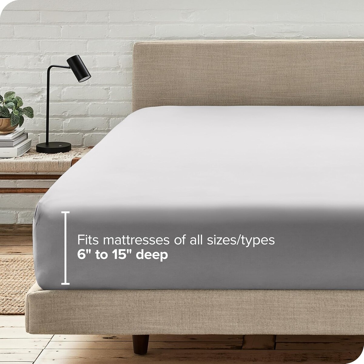 Ultra-Soft Queen Fitted Sheet - Microfiber, Wrinkle-Free, Light Grey