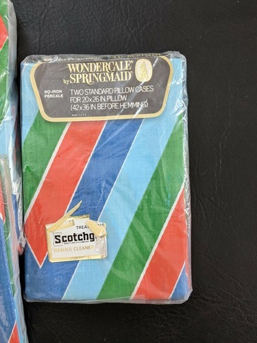 70s Springmaid Wondercale Chevron Double Fitted Flat Pillow Case Sheet Set New