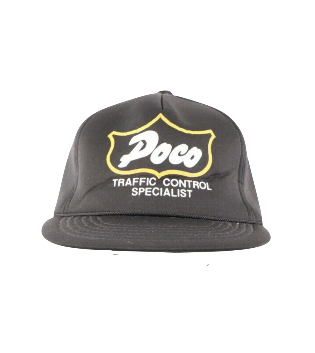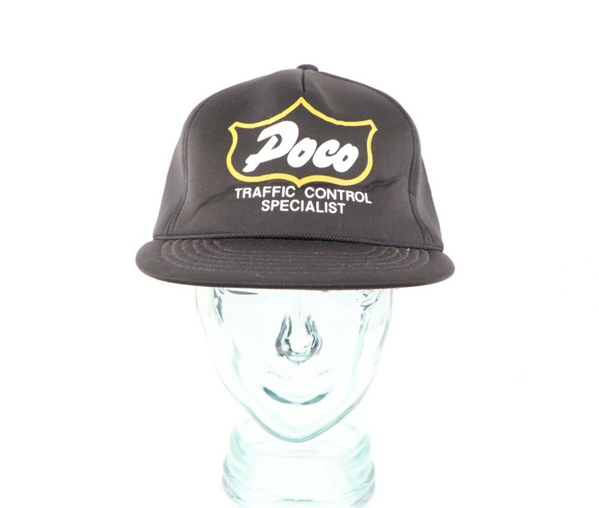 Vtg 80s Streetwear Poco Traffic Control Specialist Roped Foam Snapback Hat Black