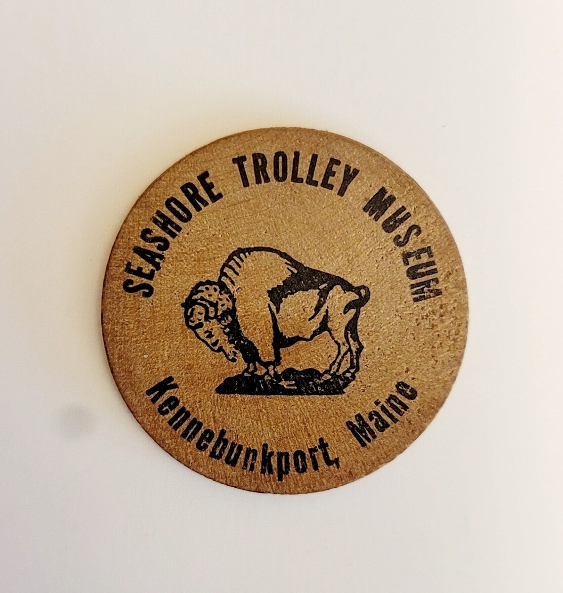 Vintage 1960s Seashore Trolley Railroad Museum Wooden Nickel Kennebunkport Maine. In great vintage condition with wear visible in pics. Approx 1.5"