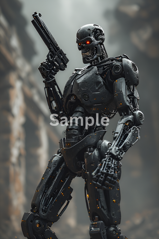 The unit’s iconic crimson optical nodes belong to the PredatorSight v6.2 neural targeting suite, granting it precise facial and structural scanning, adaptive threat analysis, and microsecond reaction time even in dust-heavy, low-visibility environments. The skull-like cranial casing contains a distributed logic core, enabling parallel computation for simultaneous engagement of multiple hostiles.