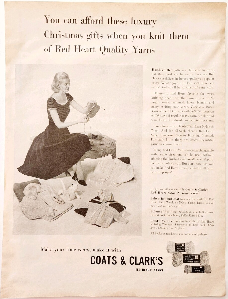 1957 Coats & Clark's Red Heart Yarn Advertisement Crafts McCall's Sewing DWJJ6