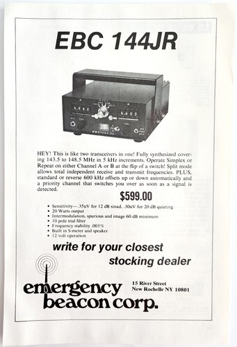 1975 Emergency Beacon EBC 144JR Transceiver Advertisement Electronics DWLL13