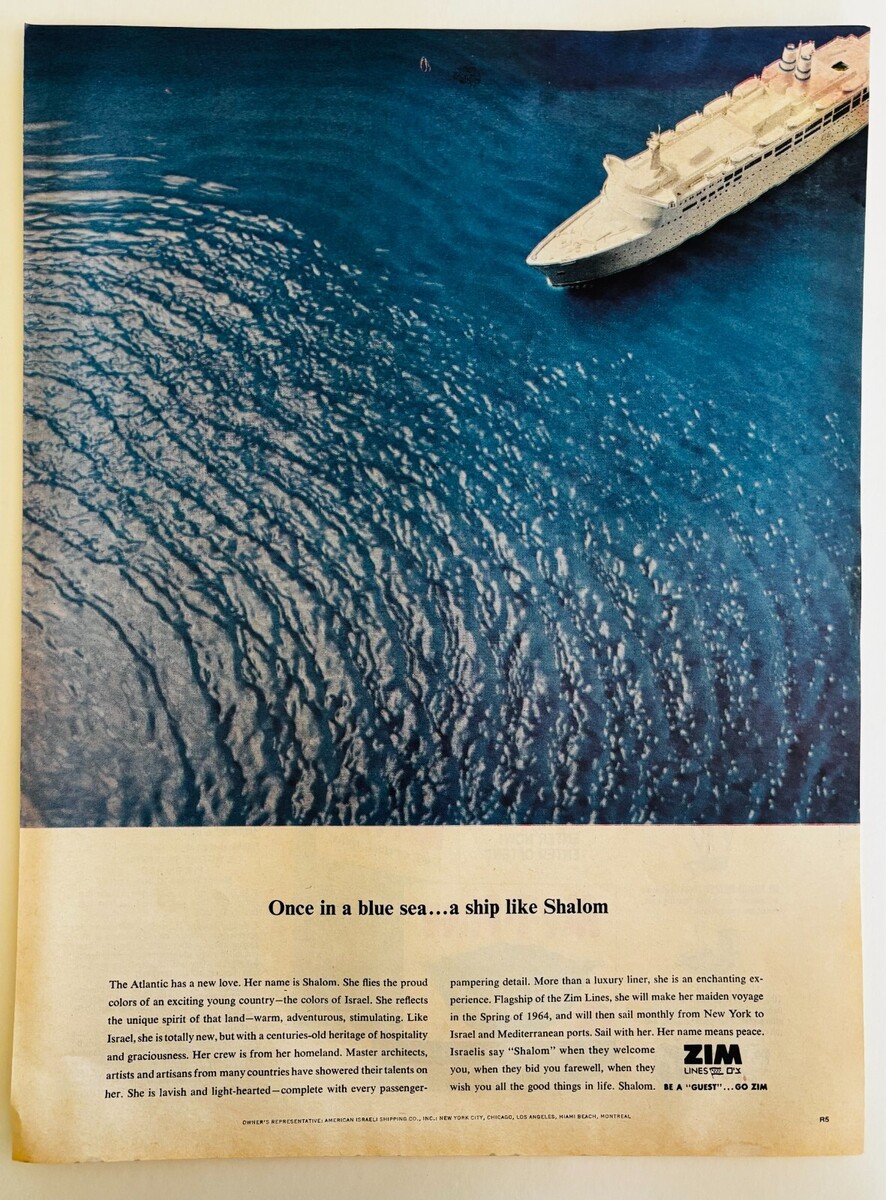 1963 Zim Lines Cruise Ship Shalom Advertisement Nautical Transportation DWJJ17