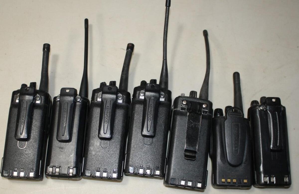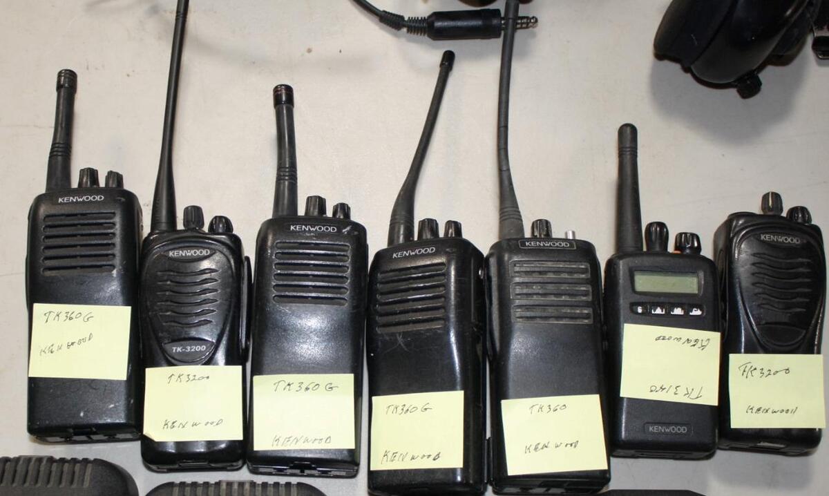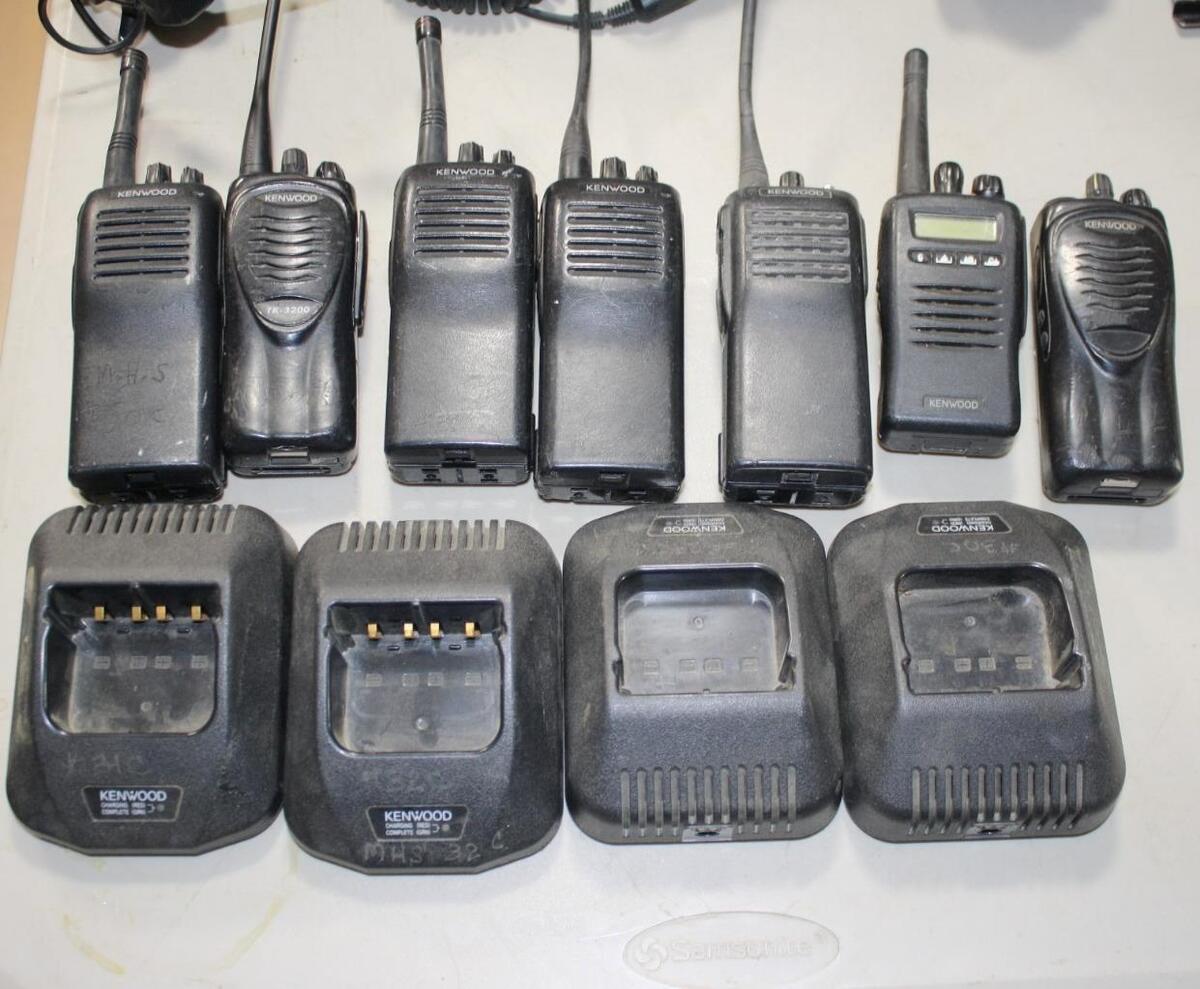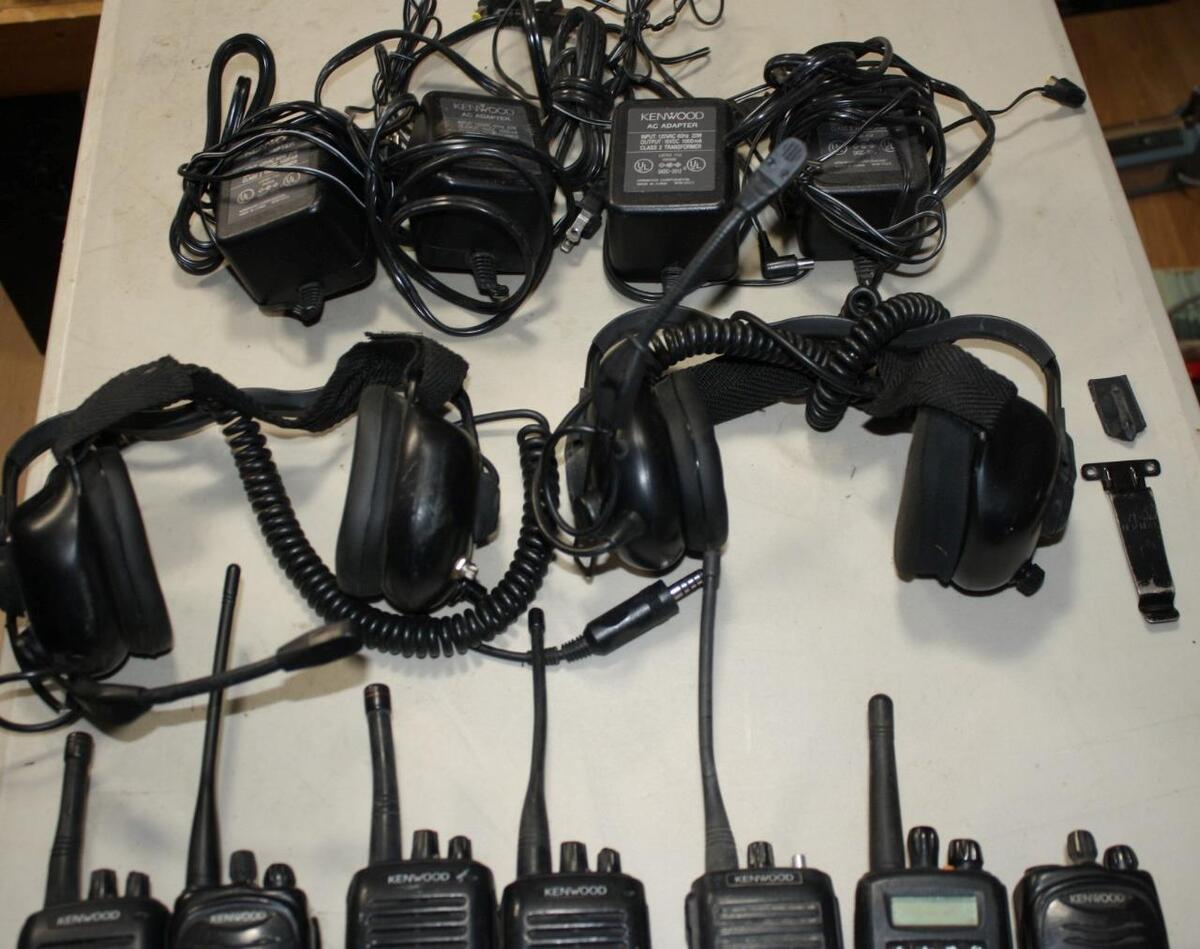 Kenwood Lot 7 portables 4 chargers 2 sets of fire com ear phones Parts or repair only