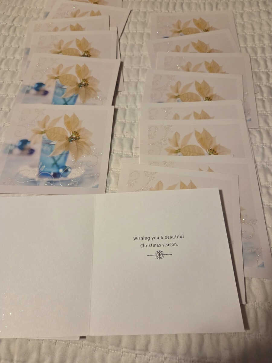 18-Hallmark Christmas Holiday Cards White Poinsettia. **No Envelopes** PX 188-4