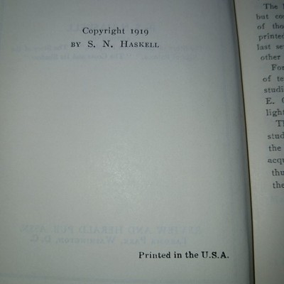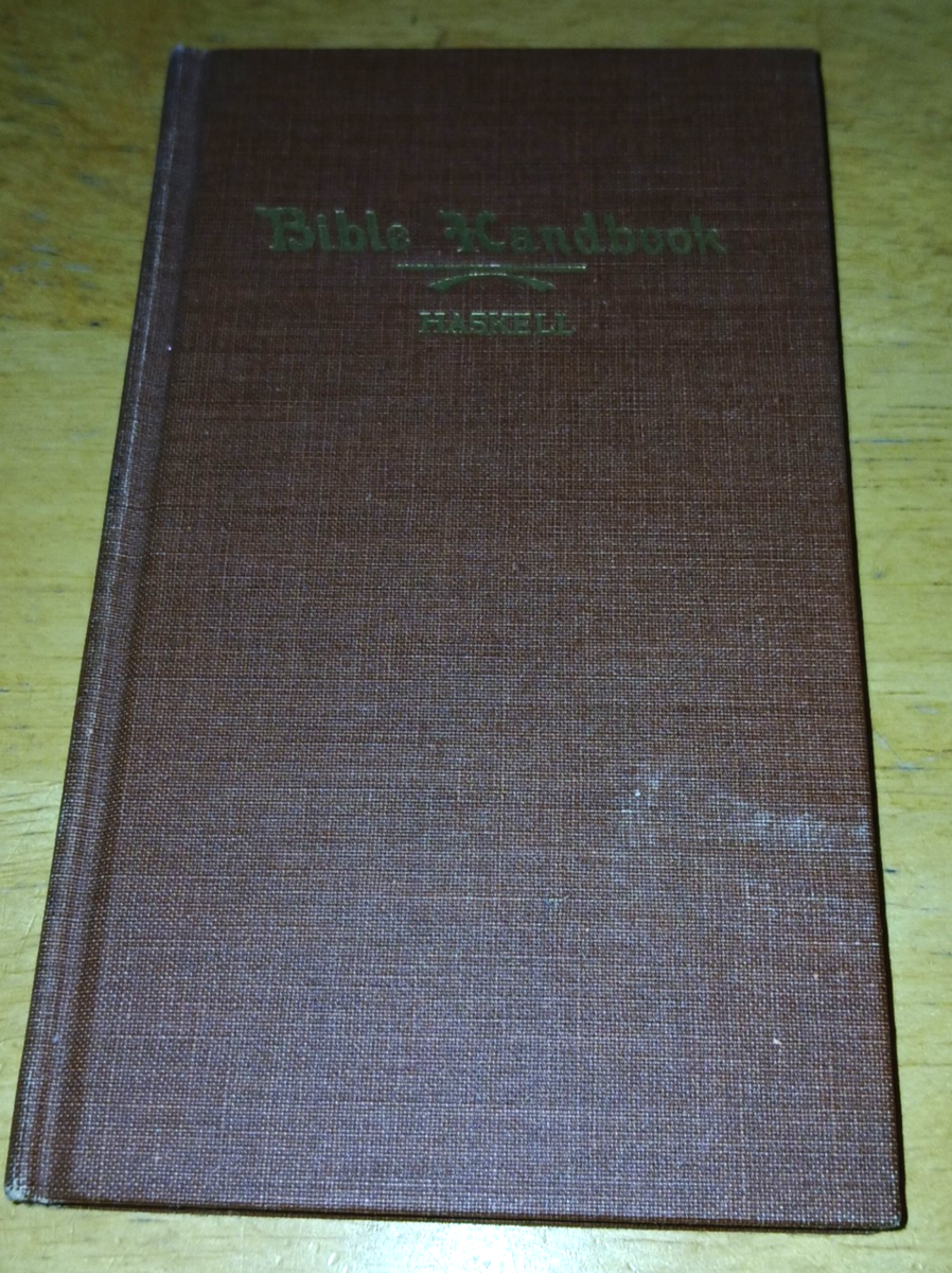 THIS IS A GREAT LITTLE VINTAGE BOOK ENTITLED "BIBLE HANDBOOK" BY STEPHEN HASKELL PUBLISHED IN 1919 BY REVIEW AND HERALD PUBLISHING CO., USA. IT IS A HARDCOVER WITH VERY SMALL PRINT.