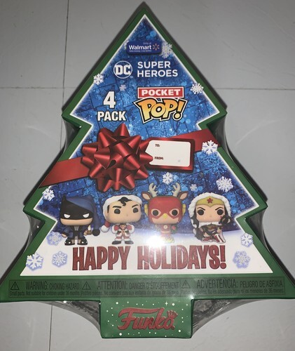Funko Pocket Pop DC Super Heroes 4 Pack Happy Holidays BATMAN SUPERMAN FLASH WW.