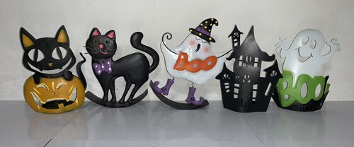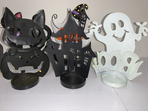 Halloween Decor Lot Of 5 Items Candle Holders Rockers Ghosts Cats