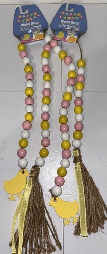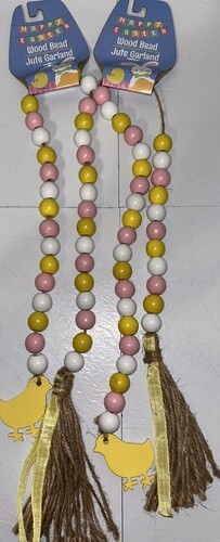 Farmhouse Pastel Wooden Bead Easter Garland 27.5 Inch Yellow Chicks Lot Of 2 NEW