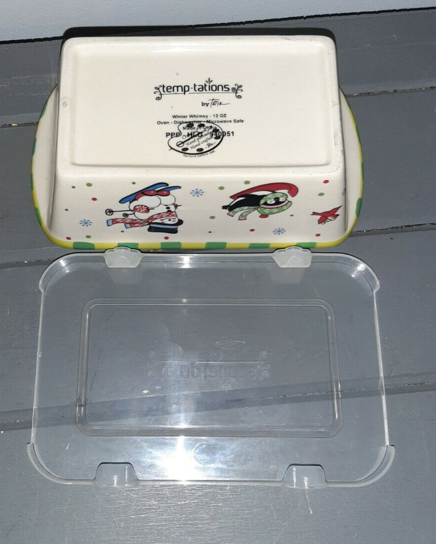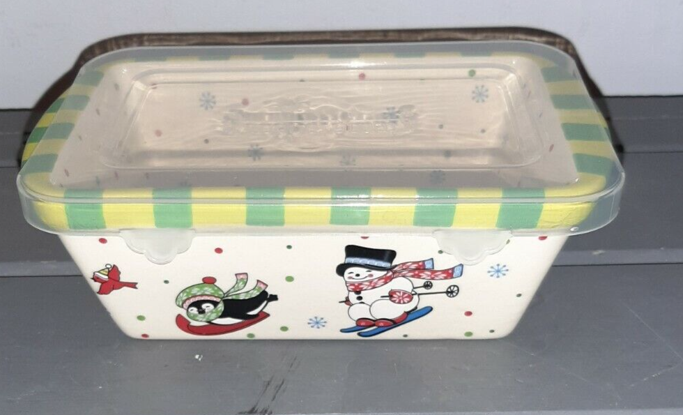 Temptations by Tara WINTER WHIMSEY Mini Loaf Pan with Plastic Lid Bakeware 12 oz