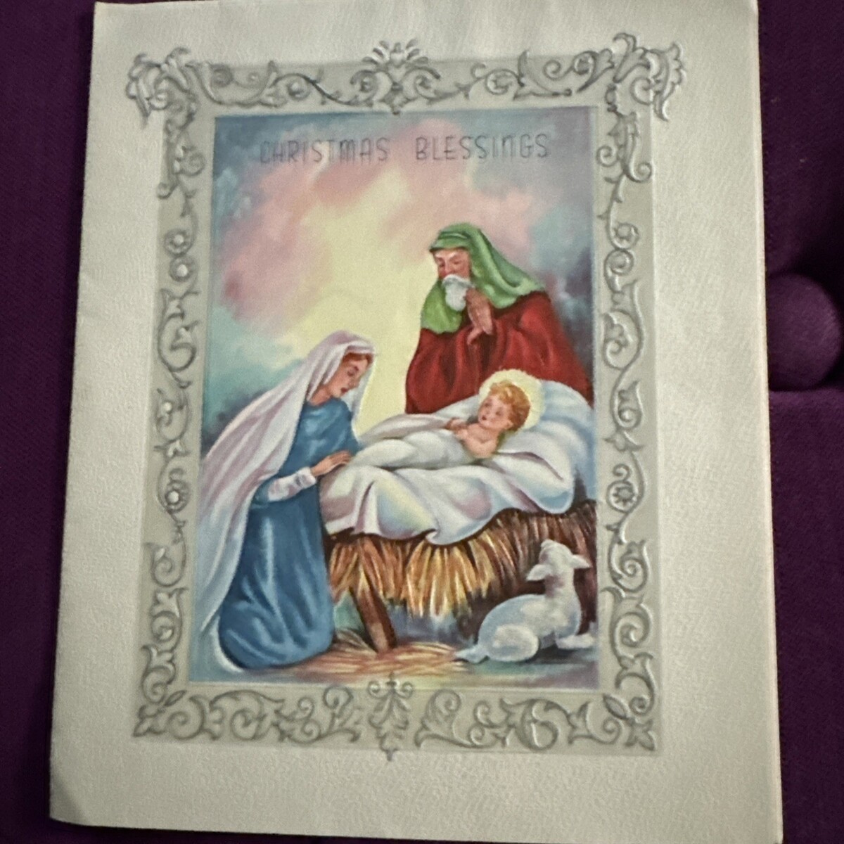40's Holy family Christ child embossed vintage Christmas Greeting Card *BB7