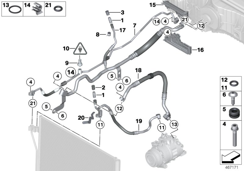 2011-2016 bmw 550i 750i f07 f10 n63 air condition ac pressure line hose 9119995
