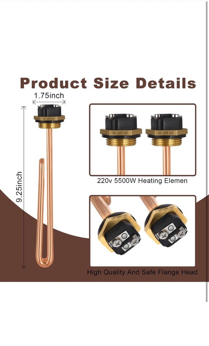 The Jinqhtek HE 55220 Water Heating Element is an electric tankless water heater element designed for efficient heating of water. With a copper color finish, this model is known for its reliable performance and durability. This pack includes 2 units of elements, making it easy to install and replace in case of a malfunction. Perfect for home improvement projects related to heating and air systems, these water heater elements are a practical choice for ensuring hot water availability in your household.
