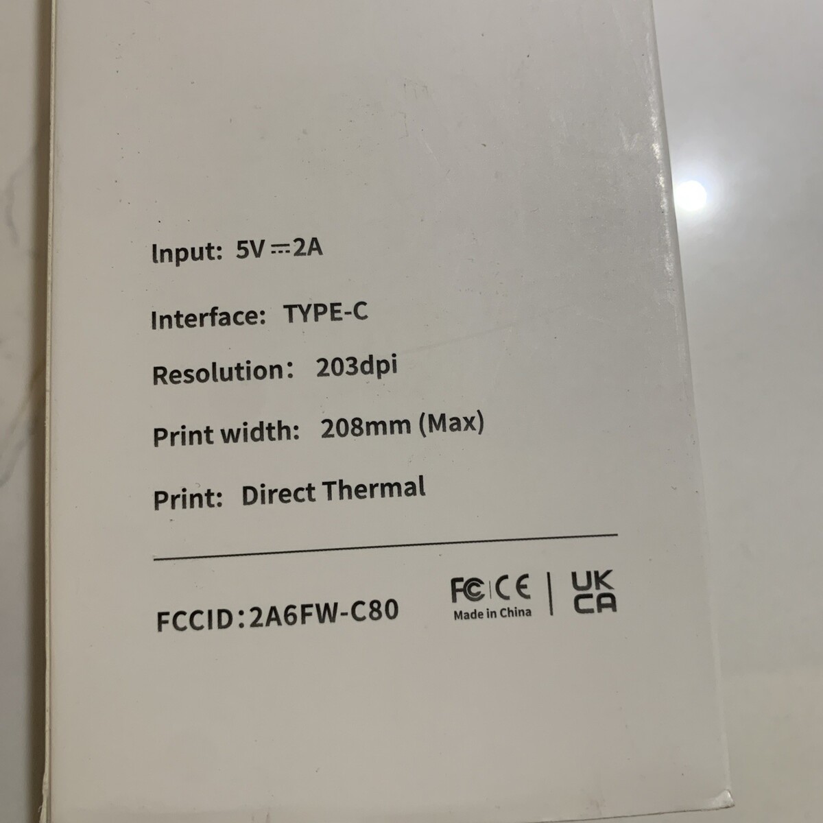 The Portable Wireless Printer is a compact and versatile mobile printer perfect for travel. With a maximum resolution of 203 x 203 DPI and a black print speed of 13-15mm/s, this thermal printer offers fast and high-quality black and white printing. Its Bluetooth connectivity allows for easy wireless printing, and its portable design makes it convenient to use on the go. With a manufacturer warranty of 1 year, this printer is a reliable option for those in need of a portable printing solution. Model c80